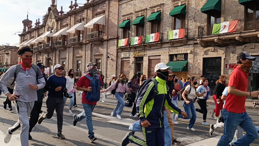 Durante el recorrido, los manifestantes realizaron diversas pintas en edificios y negocios a su paso, sin que se reportaran enfrentamientos con la ciudadanía, siguiendo la tradición de la movilización pacífica que caracteriza esta conmemoración.