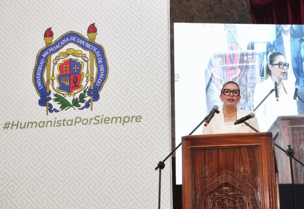 Morelia, Michoacán.- Al hacer entrega del Premio Padre de la Patria 2025 a 481 estudiantes nicolaitas y de escuelas incorporadas, la rectora Yarabí Ávila González, manifestó que las y los jóvenes representan el ejército de gran excelencia de la Universidad Michoacana de San Nicolás de Hidalgo (UMSNH).