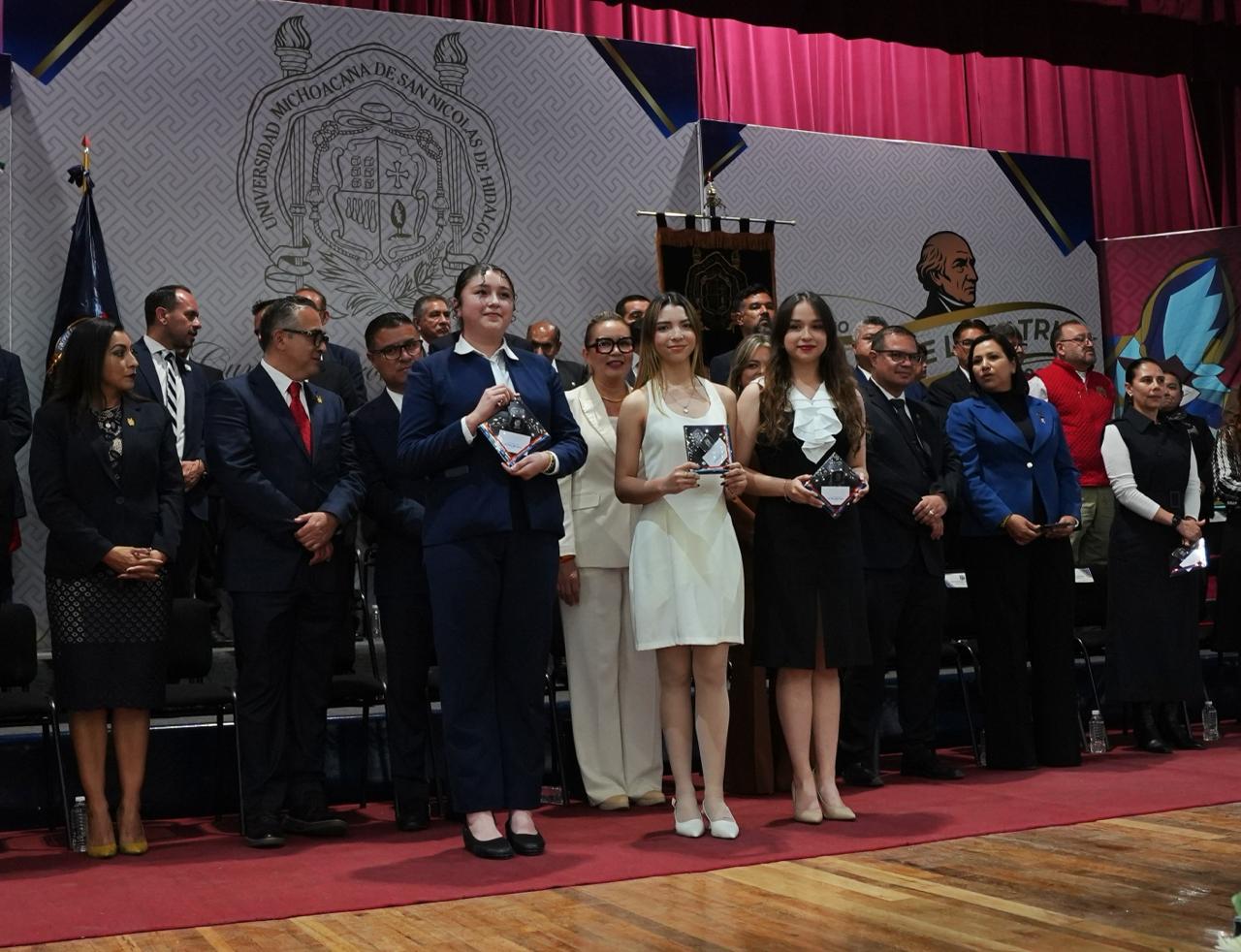 De igual forma, apuntó que, en esta edición se reconoce a 481 estudiantes la Universidad Michoacana y de escuelas incorporadas, lo que dijo, es una señal de esperanza y de futuro y refleja que las y los alumnos nicolaitas están tomando el liderazgo académico con fuerza, talento y determinación y refleja también, que la comunidad universitaria avanza hacia una nueva etapa de igualdad, mérito y reconocimiento del esfuerzo compartido. “La Universidad puede decir con orgullo que está formando a estudiantes de alto rendimiento académico que colaborarán con el desarrollo tecnológico, científico y humano de nuestro país”.