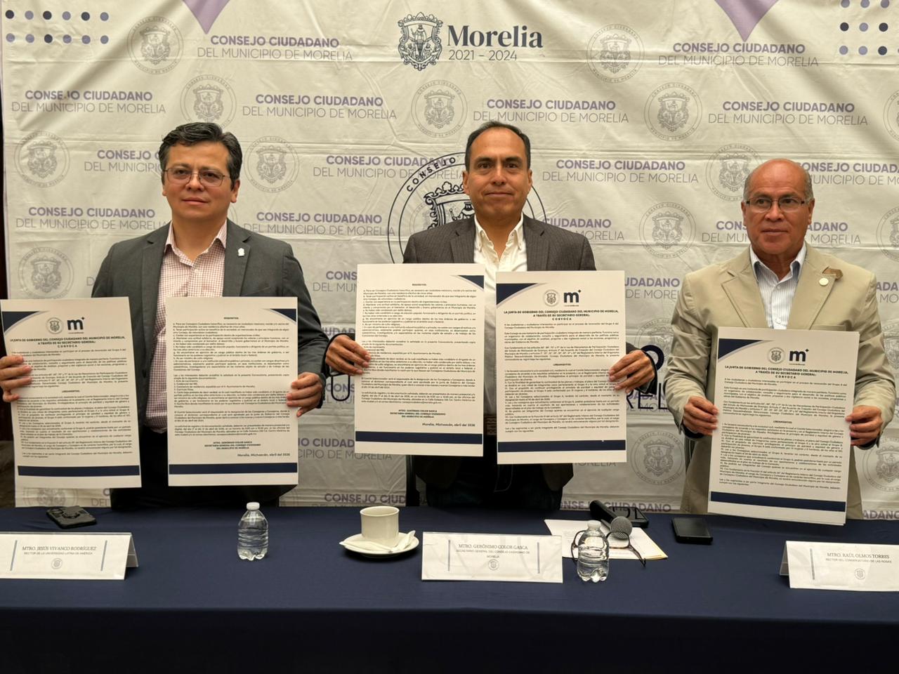 El secretario del Consejo Ciudadano de Morelia, Gerónimo Color Gasca anunció la emisión de la convocatoria para la renovación del Grupo A de este organismo descentralizado, mediante la cual se seleccionarán 22 nuevas consejeras y consejeros municipales, como parte del proceso de participación ciudadana en la toma de decisiones públicas.