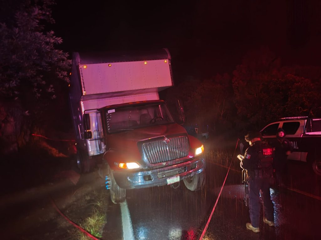 La unidad quedó severamente dañada y parcialmente fuera de la cinta asfáltica, entre la maleza a un costado de la carretera.