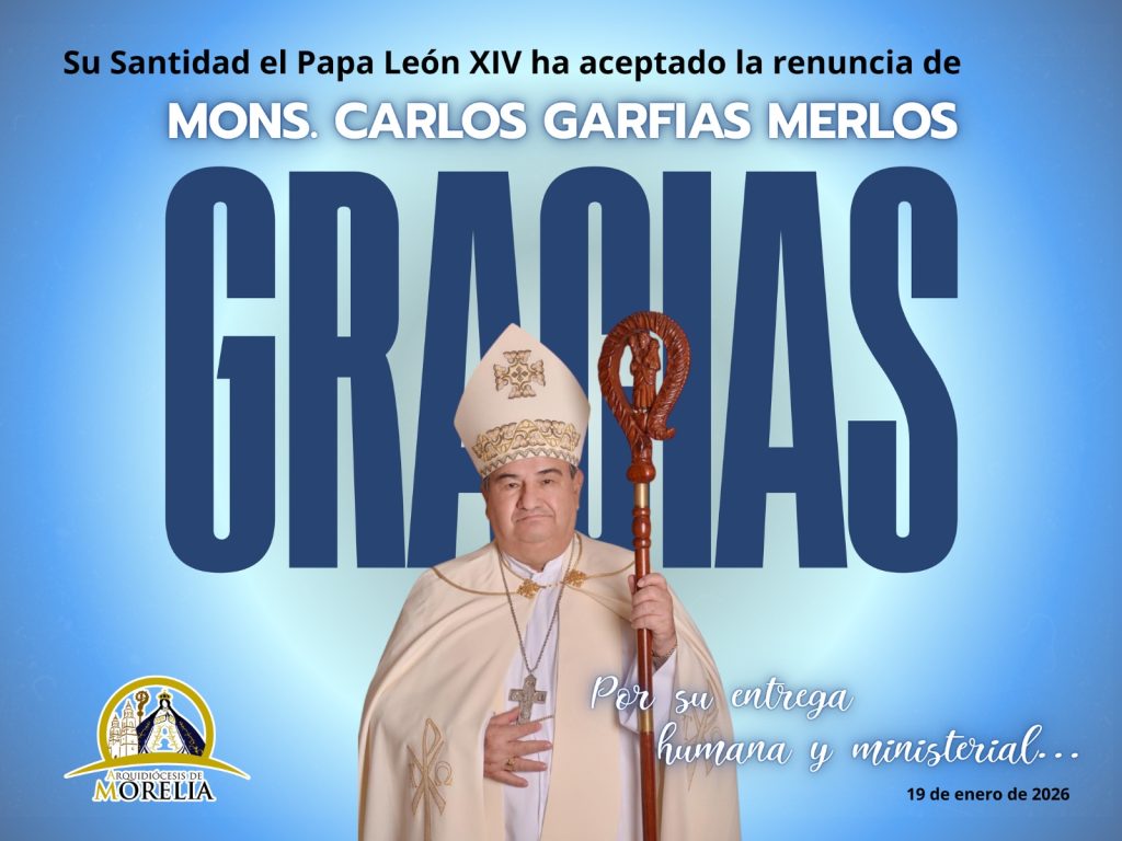 “El Santo Padre ha aceptado la renuncia al gobierno pastoral de la Arquidiócesis Metropolitana de Morelia (México), presentada por S.E. Mons. Carlos Garfias Merlos.