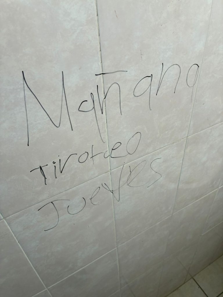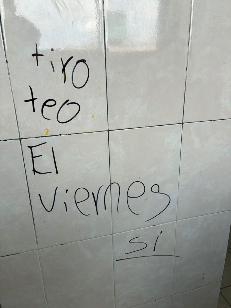 Asimismo, trascendió que personal de la institución localizó un casquillo en los baños del inmueble, así como los siguientes mensajes escritos en la pared: “Mañana tiroteo el jueves”, “tiroteo el viernes si”.