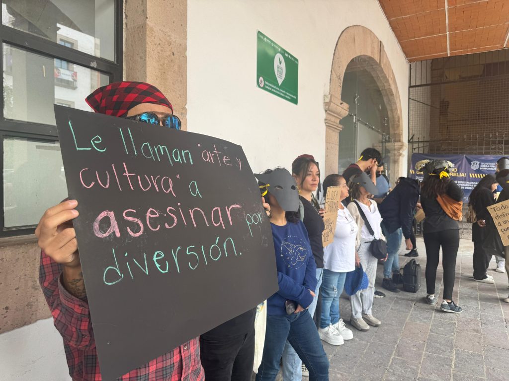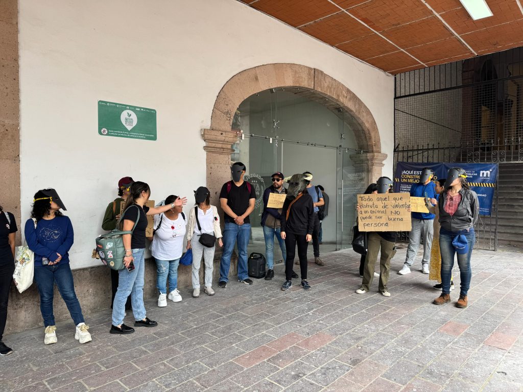 Integrantes de colectivos animalistas y ciudadanos antitaurinos se manifestaron este lunes en el Centro Administrativo de Morelia (CAM) para exigir la cancelación de la corrida de toros programada para este 30 de septiembre en la Monumental de Morelia.