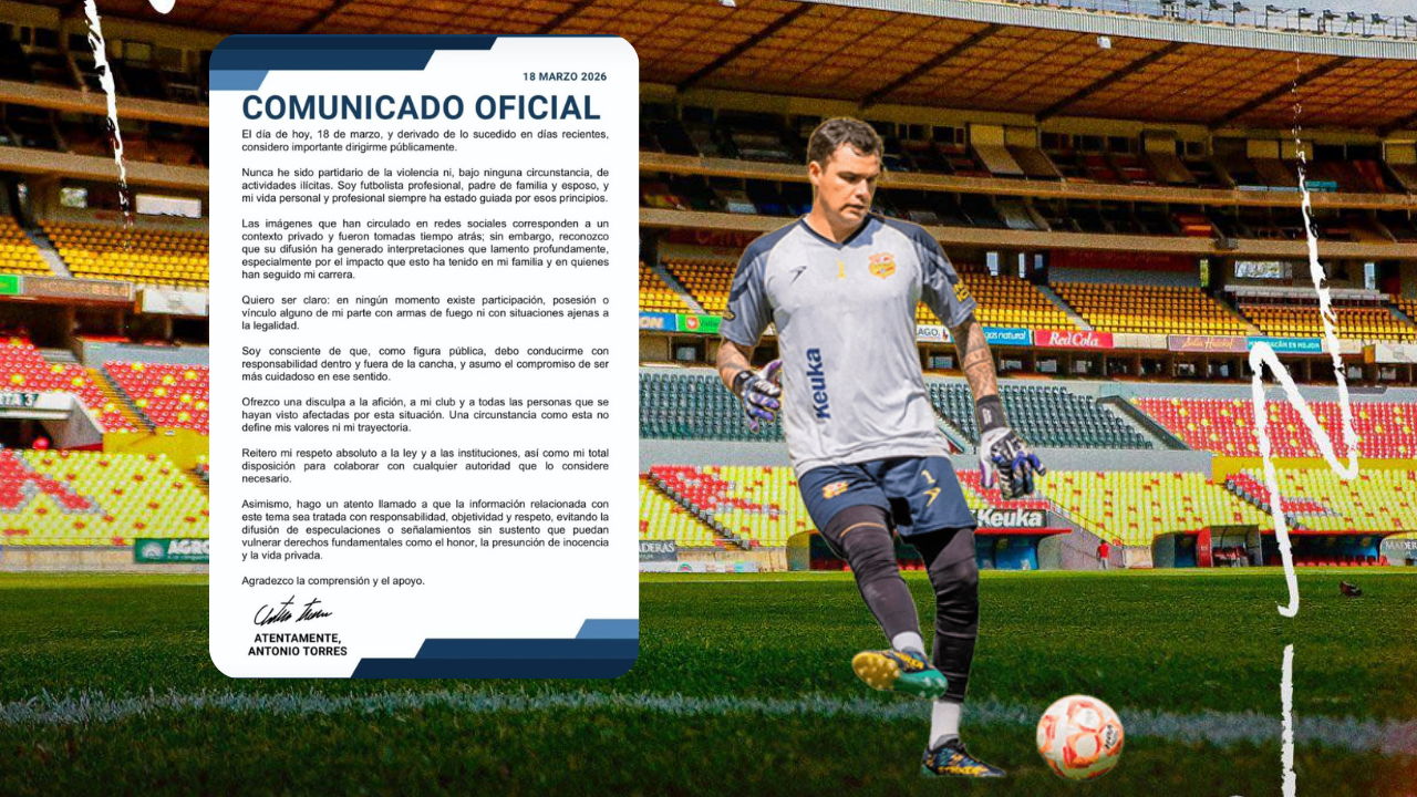 Luego de que este miércoles quedó desvinculado de Atlético Morelia, el guardameta Antonio Torres compartió un comunicado a través de sus redes sociales en el que ofreció disculpas a la afición y al club, además de dar una explicación sobre una imagen en la que aparecen armas de fuego y dos botellas de tequila, que difundió en su Instagram.
