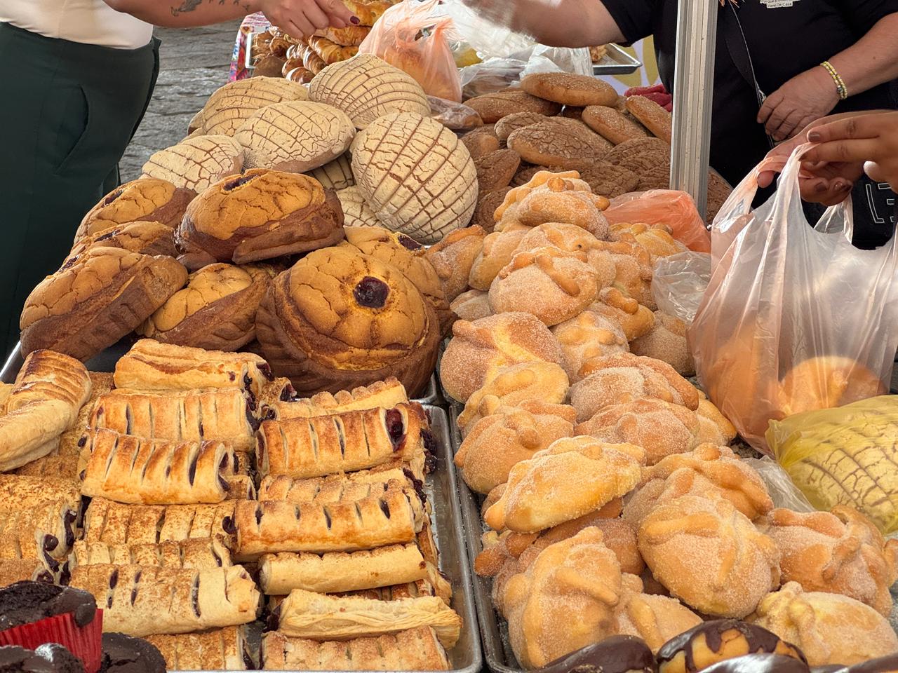 “Hoy nos acompañan más de 50 expositores que están deleitándonos con una gran variedad de piezas de pan, habrá más de 2 mil a escoger para todos los gustos. Hay hasta para los que estamos a dieta o para los que sí la quieran romper este fin de semana”