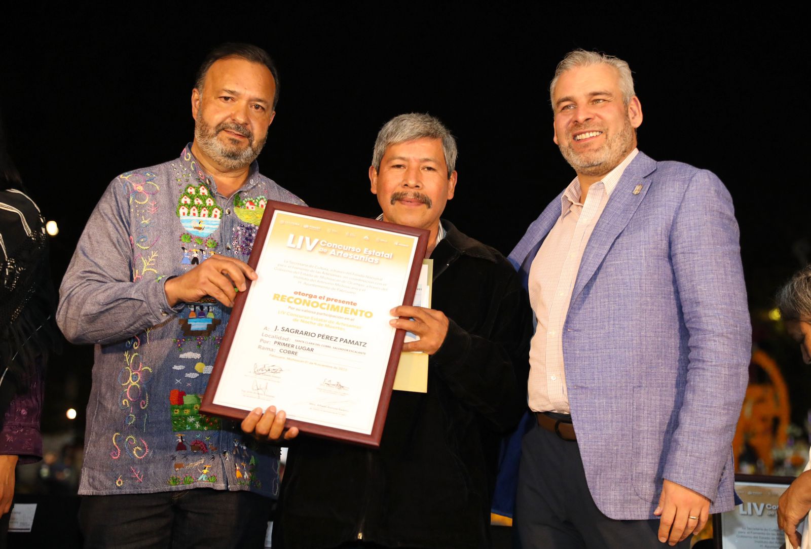 En tanto, el director general del Instituto del Artesano Michoacano (IAM), Castor Estrada Robles precisó que durante esta administración incrementó la bolsa de premios a un millón de pesos, un 30 por ciento más de lo que había al inicio de la gestión estatal, lo cual, contribuye para alentar la participación de los artesanos y se fortalece su reconocimiento.