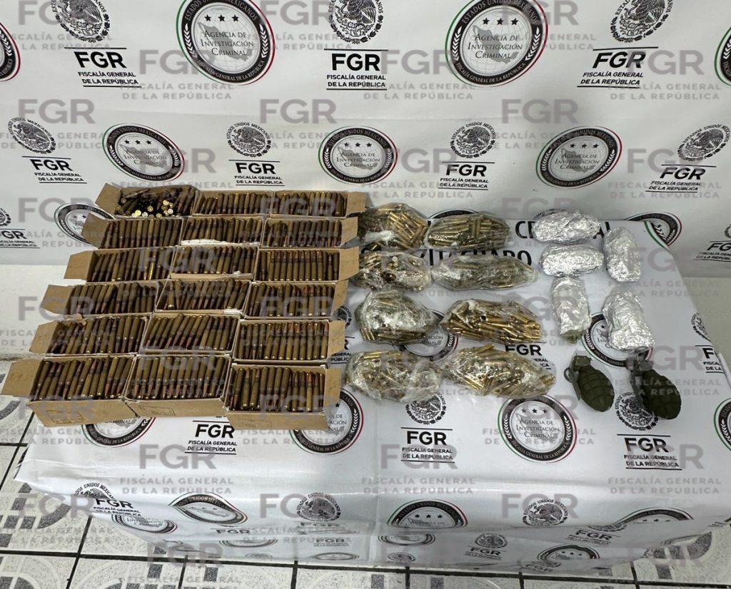 En dicha revisión, los elementos aseguraron siete granadas de fragmentación y mil 710 cartuchos útiles, distribuidos en cajas de cartón y depositados en la zona de paquetería del propio autobús, mismos que fueron puestos a disposición de la Fiscalía Federal en la entidad, quien continúa con la integración de la indagatoria para proceder conforme a derecho.