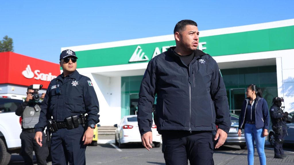 Los elementos policiales realizan tareas principalmente de vigilancia y proximidad social para dar certeza a las personas que acudan a instituciones financieras a realizar retiros o depósitos en esta temporada decembrina, donde anualmente incrementa la afluencia, principalmente por el pago del aguinaldo.