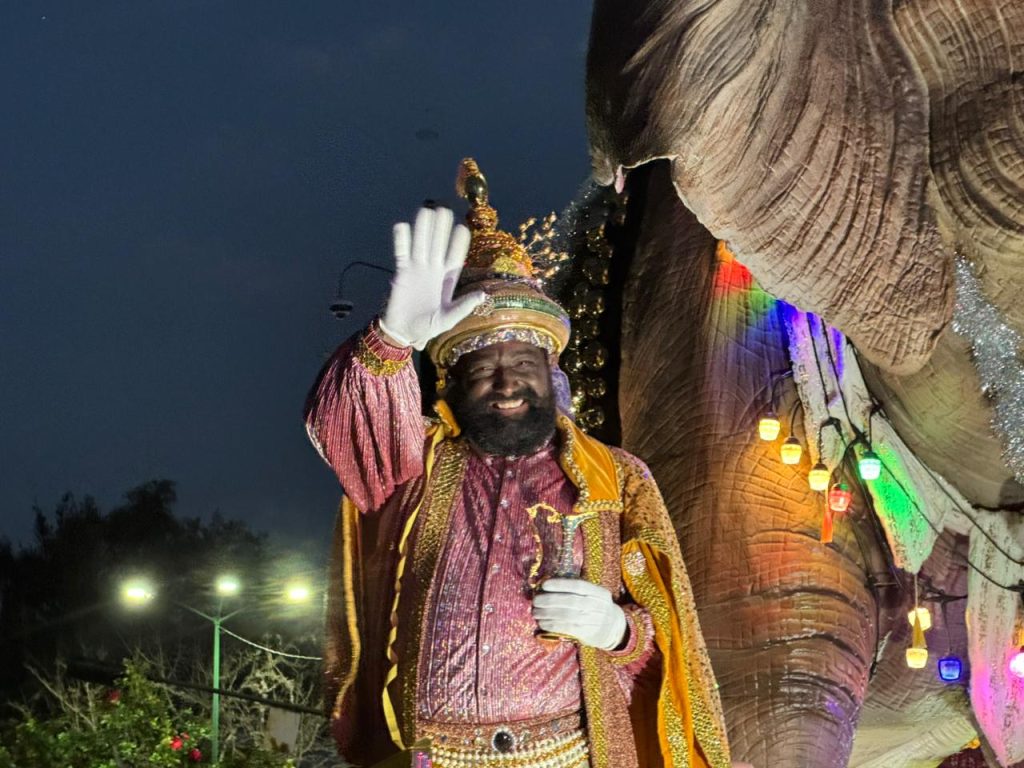 El desfile fue acompañado por decenas de bailarines y carros alegóricos que iluminaron la noche y alegraron a las familias reunidas a lo largo del trayecto, convirtiéndose en un espectáculo lleno de color y tradición.