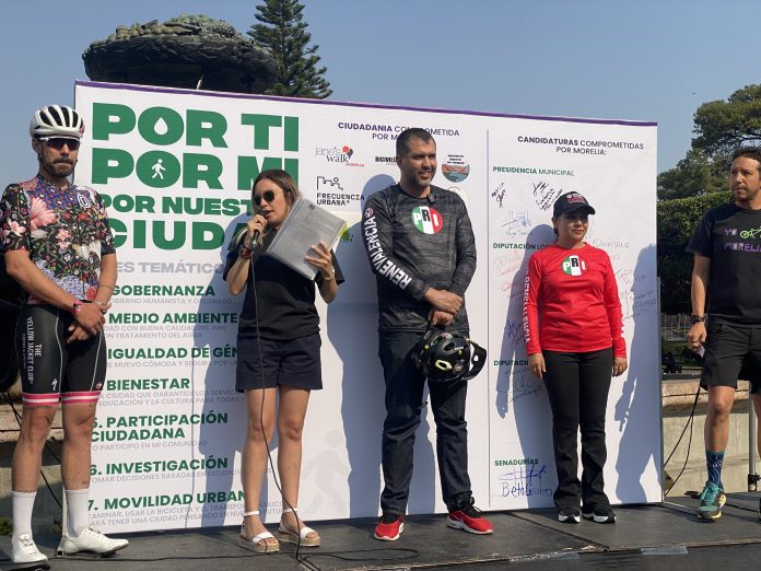 El candidato del Partido Revolucionario Institucional (PRI) a la alcaldía de Morelia, René Valencia Reyes, refirió que en el tema de movilidad es importante dar mantenimiento a las ciclovías de la capital, así como generar conciencia sobre el respeto hacia el ciclista y peatón.