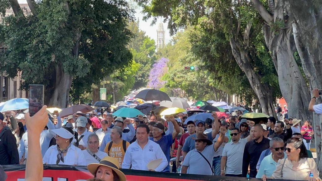 La movilización inició después de las 11:00 horas, con avance lento pero nutrido, debido a la participación de las 22 regiones de la Sección XVIII, así como de sindicatos aliados, entre ellos transportistas, trabajadores municipales, del Poder Judicial y del CONALEP.