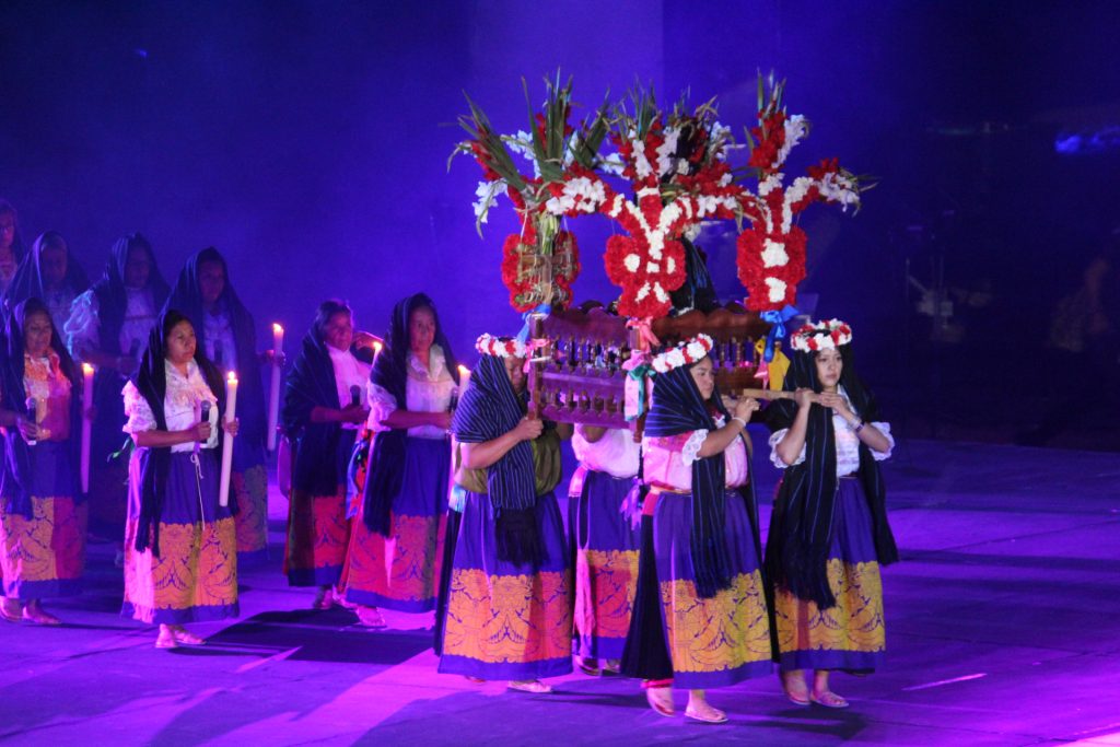 Pese a que horas antes del espectáculo se registró una ligera lluvia, cerca de las 8:15 de la noche, más de 350 artistas de varias regiones deleitaron al público con una muestra de las danzas más representativas que tienen sus localidades para rendir tributo a sus dioses.