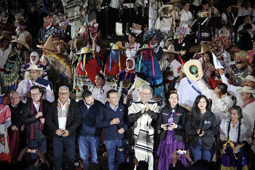 Para poner un poco más de ritmo y maravillar a los cientos de asistentes, la tradicional Danza de los Viejitos y un espectáculo de drones que dibujaron en el cielo imágenes y palabras, coronaron lo que fue una noche de cultura y tradición.
