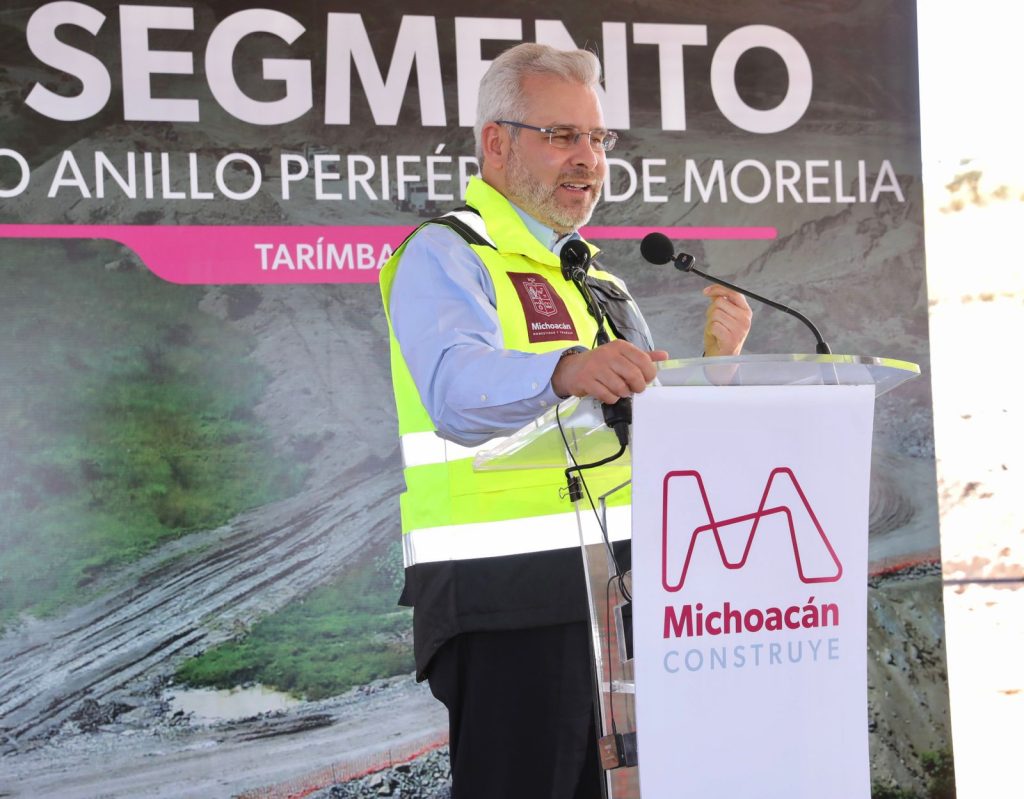 Tarímbaro, Michoacán.- Con una inversión estatal de 789.9 millones de pesos, el gobernador Alfredo Ramírez Bedolla arrancó la construcción del cuarto segmento del segundo anillo periférico que beneficiará a más de 800 mil habitantes de 30 fraccionamientos, colonias, tenencias y localidades de Morelia, Charo, Tarímbaro y Álvaro Obregón.