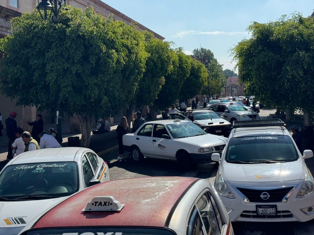 Desde temprana hora de este martes, cientos de taxistas pertenecientes al Bloque Transportista bloquearon el paso vehicular en las calles aleñadas al Ayuntamiento de Morelia.