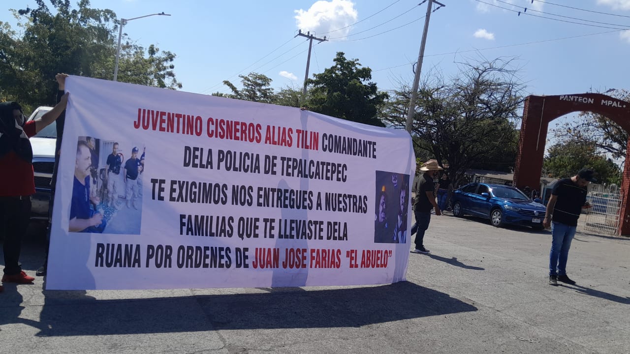 En ambos sitios, los manifestantes, en su mayoría con el rostro cubierto atravesaron algunos vehículos para cerrar el paso y mostraron dos rótulos exigiendo que sean regresadas familias de La Ruana, señalando a Juventino Cisneros, alias “El Tilín”, policía de Tepalcatepec y al jefe de tenencia La Ruana de estar involucrados.