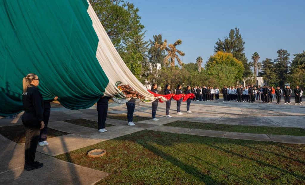 Flanqueada por integrantes del Gabinete Legal y Ampliado, la rectora izó el Lábaro Patrio, y con orgullo y respeto las y los nicolaitas entonaron el Himno Nacional para que posteriormente la multigalardonada Banda de Guerra de la institución diera paso a la marcha “Crisol de Pensadoras y Pensadores”.