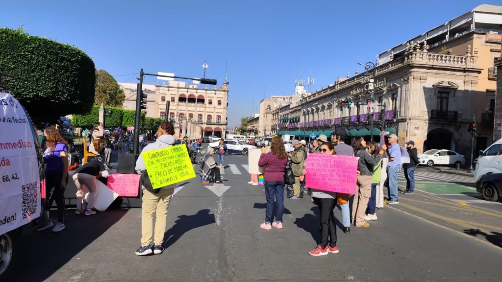 En demanda de que se cumpla con el denominado “pago de marcha” y de seguros de vida, familiares y beneficiarios de trabajadores y docentes de la Universidad Michoacana de San Nicolás de Hidalgo (UMSNH) fallecidos entre 2018 y 2025, se manifestaron sobre la avenida Madero, donde mantuvieron el cierre parcial de la vialidad durante cerca de 5 horas.