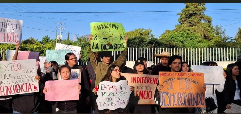 Con pancartas en las que exigían justicia para Carlos Manzo, los estudiantes marcharon por las principales Avenidas de la ciudad hasta llegar al Centro de la ciudad; de manera simultánea, habitantes de varias comunidades bloquearon por tiempo indefinido la carretera Uruapan-Los Reyes, en la desviación a Corupo, lugar conocido como “Paquicho”, para exigir que se capture a los autores intelectuales del cobarde asesinato.