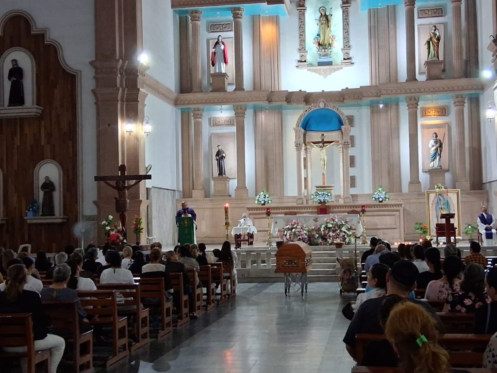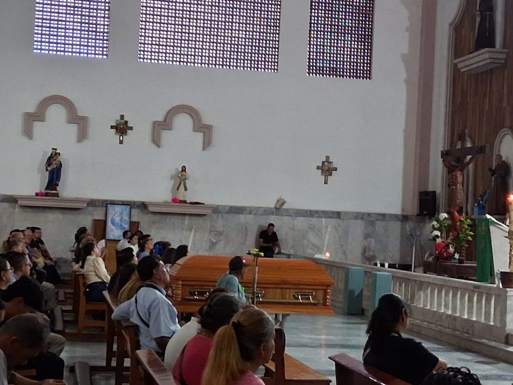 La tarde de este lunes, las campanas de la iglesia sonaron en el centro de la ciudad con el repique propio que anuncia el luto de una misa de cuerpo presente, ante lo cual en pocos minutos el recinto se llenó.