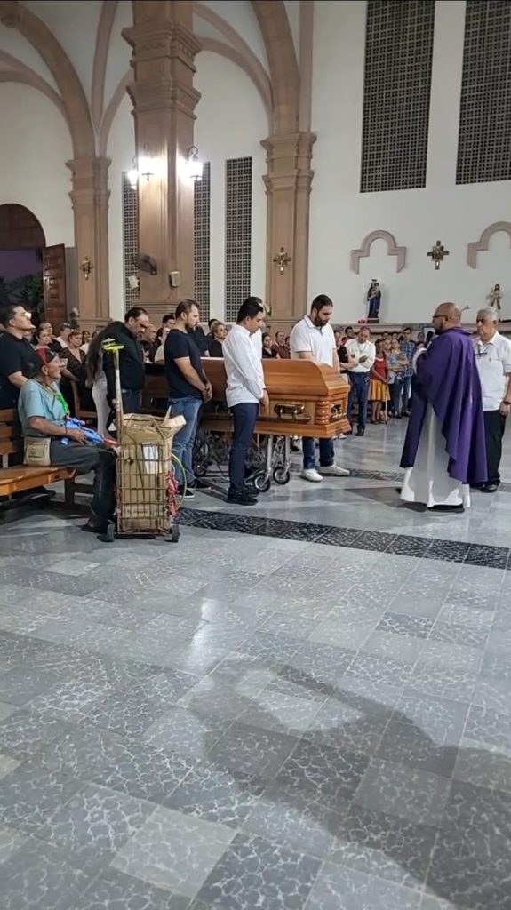 Pasadas las 18:00 horas llegó el féretro de color café, familiares y amigos lo bajaron de la carroza y lo colocaron frente al altar, para que se realizara la ceremonia religiosa impregnada de solemnidad, dolor y tristeza, donde se recordó el legado de quien luchó hasta el último día por mejorar las condiciones del sector limonero en Tierra Caliente.