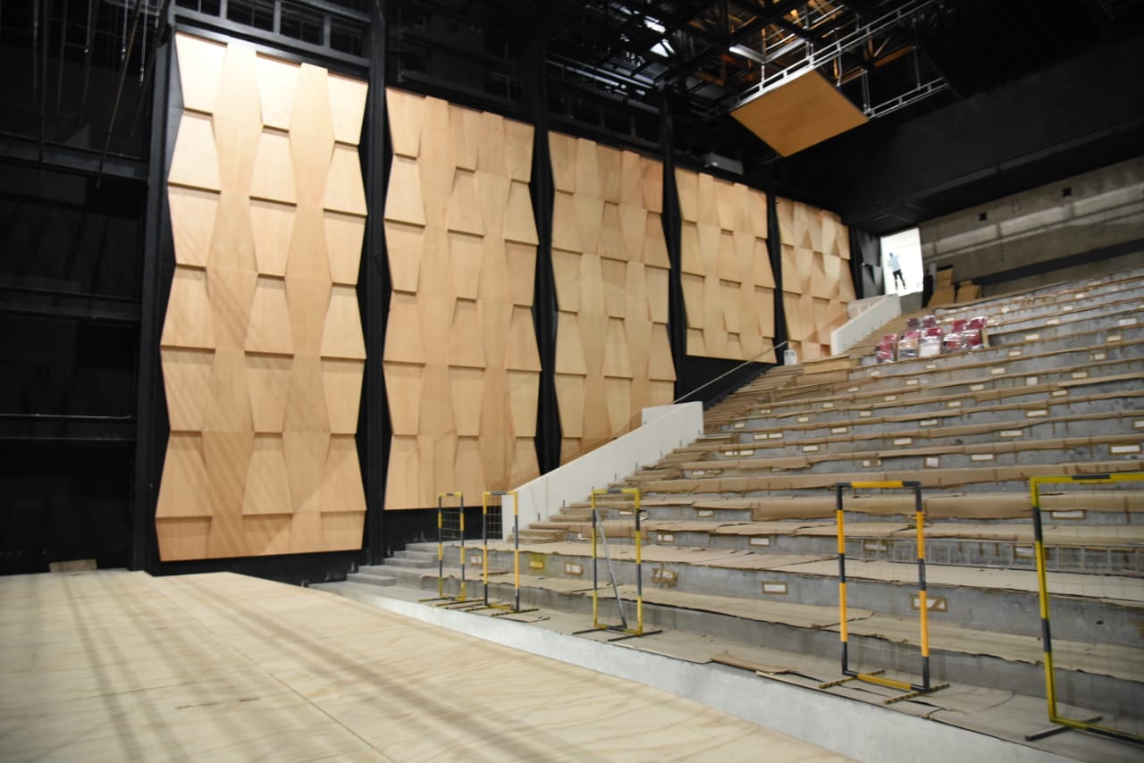 Posteriormente, la SCOP ejecutó la primera etapa de acabados en camerinos, sanitarios del sótano, vestíbulo, dulcería, muros en la sala teatral, mezzanine y áreas de usos múltiples, que corresponde a dos contratos más.