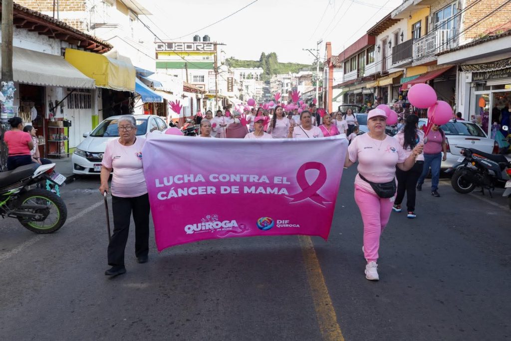 La jornada dio inicio con una marcha rosa, que recorrió las principales calles de Quiroga en un ambiente lleno de color, unión y mensajes de prevención, donde mujeres, niñas, familias y servidores públicos unieron sus pasos para rendir homenaje a las sobrevivientes y recordar a quienes han enfrentado esta enfermedad.