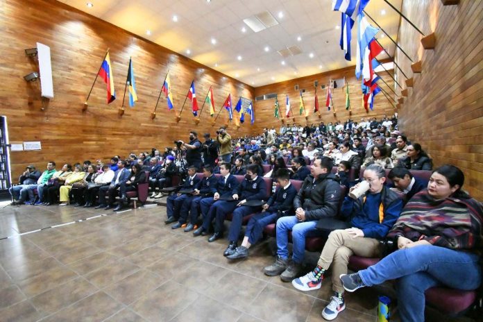 Con la presencia de niñas, niños, adolescentes y jóvenes, la Secretaria de Educación Pública, Leticia Ramírez Amaya, compartió un mensaje a la comunidad patzcuarense, resaltando la perspectiva humanista y científica orientada a una cultura de paz y no violencias, con igualdad de género inclusiva y con justicia social.
