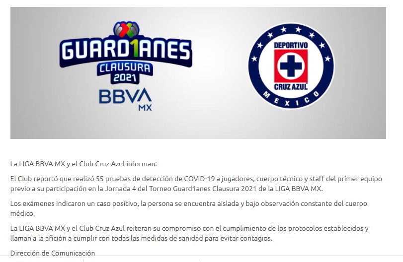 La máquina Celeste del Cruz Azul y los Rojinegros del Atlas, han sumado este viernes más casos positivos de COVID-19, luego de que en las últimas pruebas arrojaron un total de 4 casos de Coronavirus.