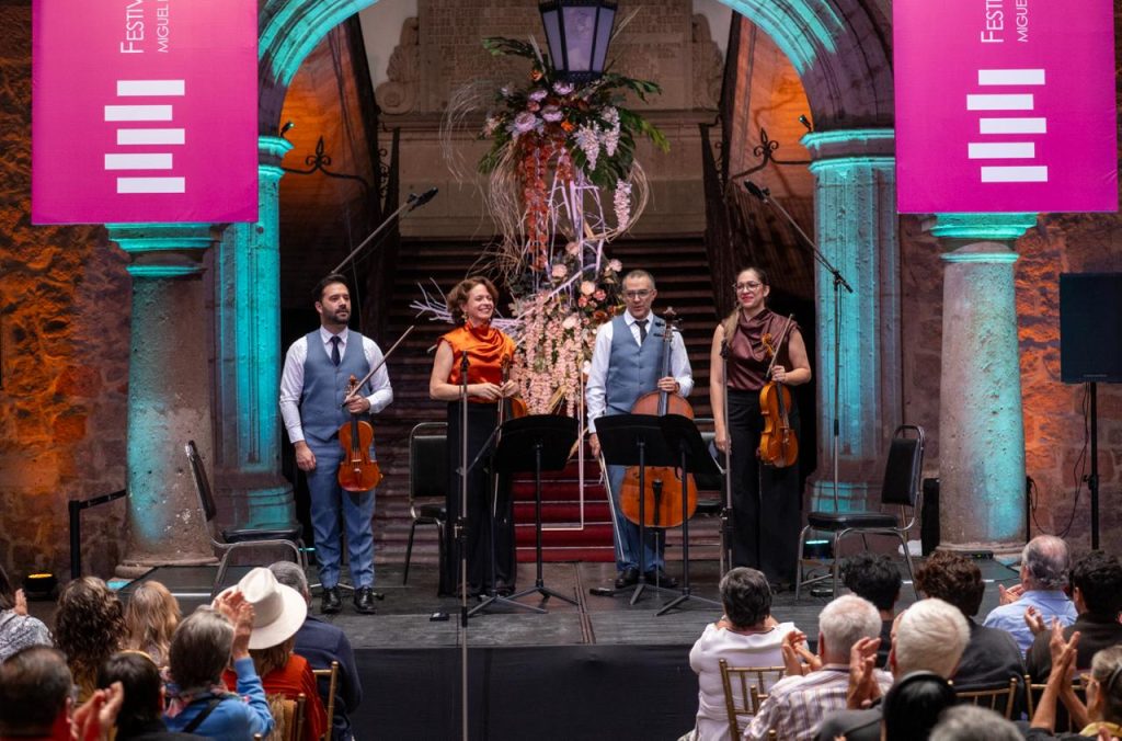 Morelia, Mich.- La tarde del lunes, el Palacio Municipal se llenó de historia y emoción con la presentación del Cuarteto Q-Arte en el marco del Festival de Música de Morelia Miguel Bernal Jiménez, ofreciendo a las 13h un concierto que recorrió la riqueza de la música de cámara de México y Latinoamérica.