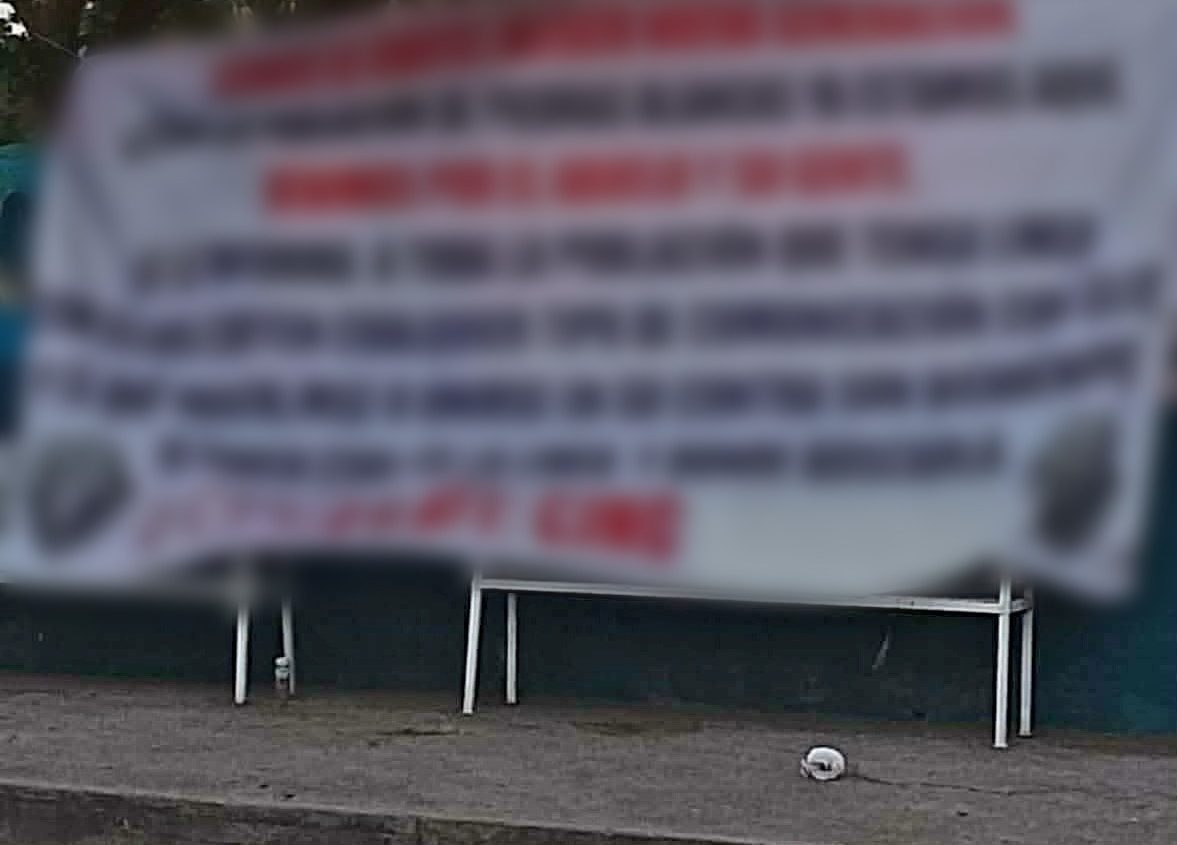 Buenavista, Mich.- Este jueves habitantes de la localidad de Piedras Blancas, descubrieron tres lonas colocadas en la plaza principal, a un costado de la carretera Apatzingán-Tepalcatepec, que estaban firmadas por un grupo delincuencial jalisciense.