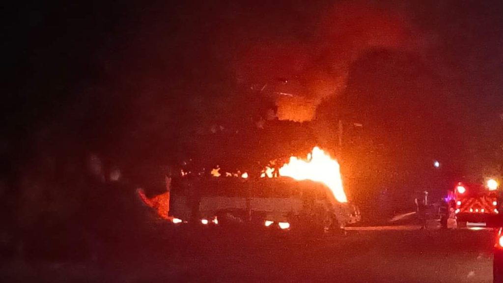 Lázaro Cárdenas, Mich.- Delincuentes desconocidos incendiaron la noche de este viernes, tres camiones de una empresa dedicada al transporte de personal, en el puerto de Lázaro Cárdenas. Una de las unidades fue reportada como pérdida total.