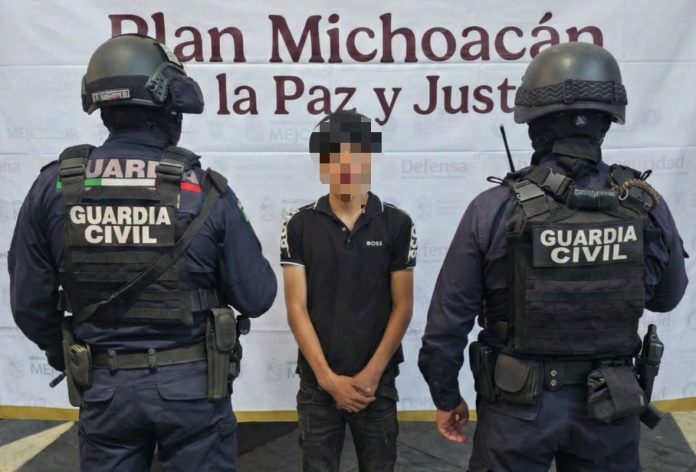 Morelia, Michoacán.- Derivado de las acciones operativas que se mantienen de manera permanente en la región de Tierra Caliente, elementos de la Guardia Civil aseguraron en el municipio de Aguililla a un adolescente en posesión de diversas dosis de sustancia, al parecer droga, y quien, de acuerdo a indicios estaría presuntamente relacionado con los hechos violentos registrados el pasado domingo en esta zona, donde se reportaron incendios de vehículos e inmuebles.