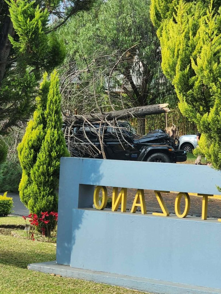 El segundo incidente sucedió en las cercanías de la Glorieta Juan Pablo II, en la zona de Altozano. En el sitio se observó que una camioneta Jeep, color negro, se salió de control, trepó al camellón central y derribó un árbol; el conductor resultó levemente lesionado.