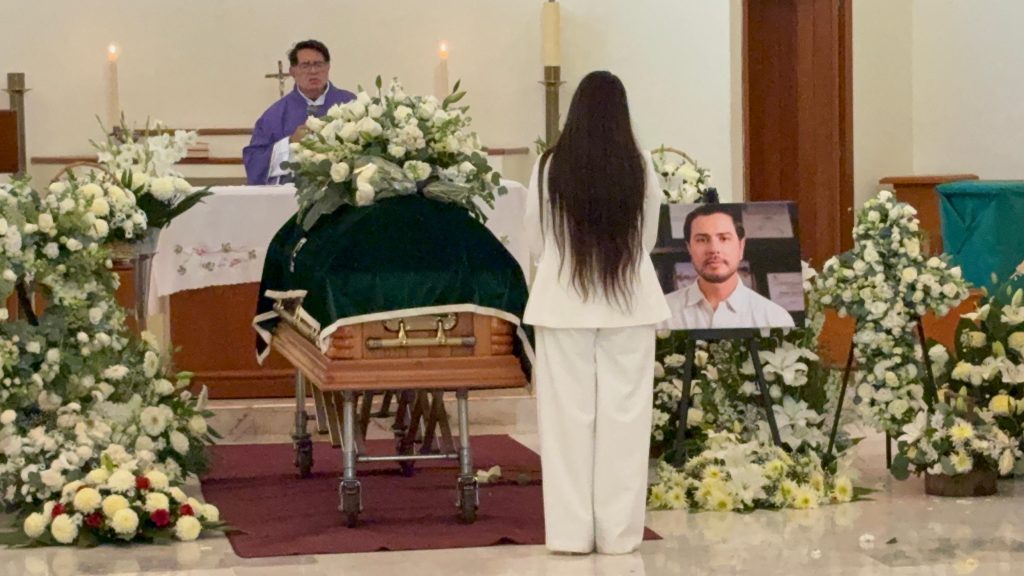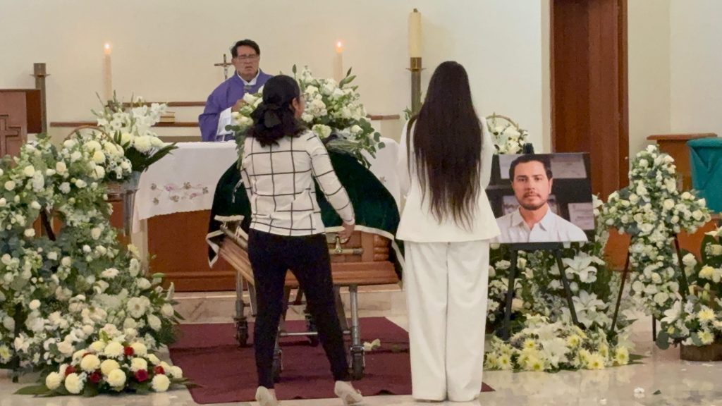 El servicio religioso que tuvo lugar a las 13:30 horas y al que solo se permitió el acceso a medios de comunicación durante unos minutos, reunió a las personas más cercanas al dirigente limonero. Su esposa, Ameli Gissel Navarro Lepe, presidenta del Tribunal Electoral del Estado de Michoacán, y sus dos pequeños hijos, vestidos de blanco, le dieron el último adiós entre flores y oraciones.
