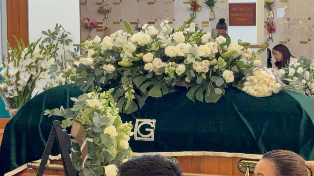 El féretro, rodeado de rosas blancas y acompañado por una foto del propio Bernardo, fue recibido con los acordes de un mariachi que interpretó piezas religiosas mientras la misa avanzaba en silencio y respeto.