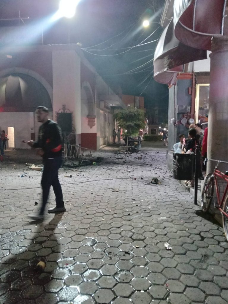 De acuerdo con la policía, minutos después de las 20:00 horas, dos puestos ambulantes de cuates estallaron simultáneamente en la plaza principal de dicha demarcación.