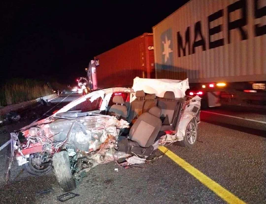 La Unión, Guerrero.- 20 de diciembre de 2025.-Un choque lateral en el que estuvieron involucrados un auto particular y un camión nodriza, dejó como saldo un adulto mayor sin vida y una mujer herida. El incidente en la Autopista Siglo XXI.