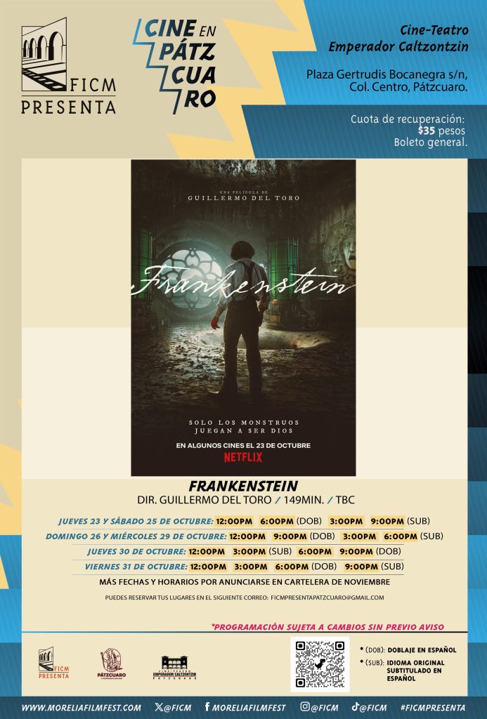 Aunque se realizó la clausura oficial de esta edición del Festival, este sábado y domingo se se proyectarán películas en cines de Morelia; asimismo, en lo que resta del mes, en la sede del municipio de Pátzcuaro se presentarán películas como “Muñecos Infernales” de Benito Alazraki y “Frankestein” de Guillermo del Toro.
