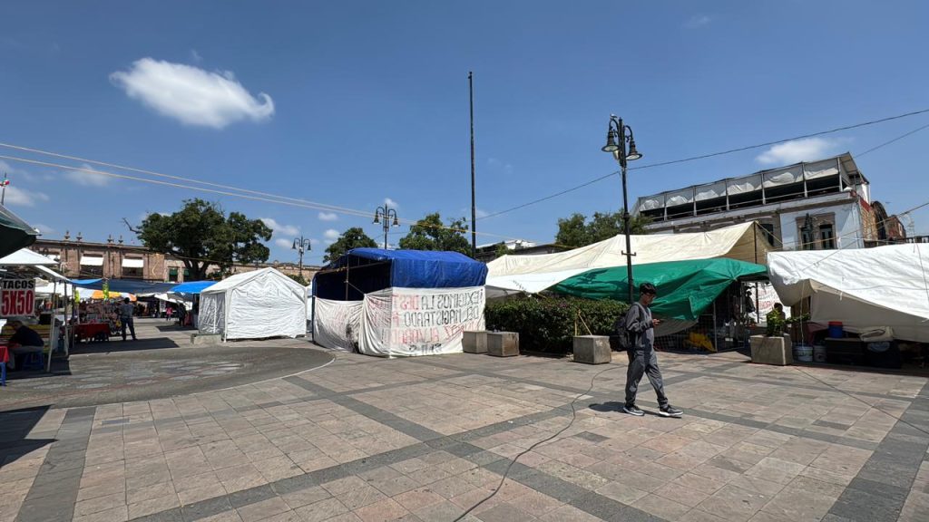 Desde la madrugada de este 1 de octubre, un grupo de comerciantes del Frente Nacional de Lucha por el Socialismo (FNLS) se plantó en la plaza Melchor Ocampo, del Centro Histórico de Morelia.