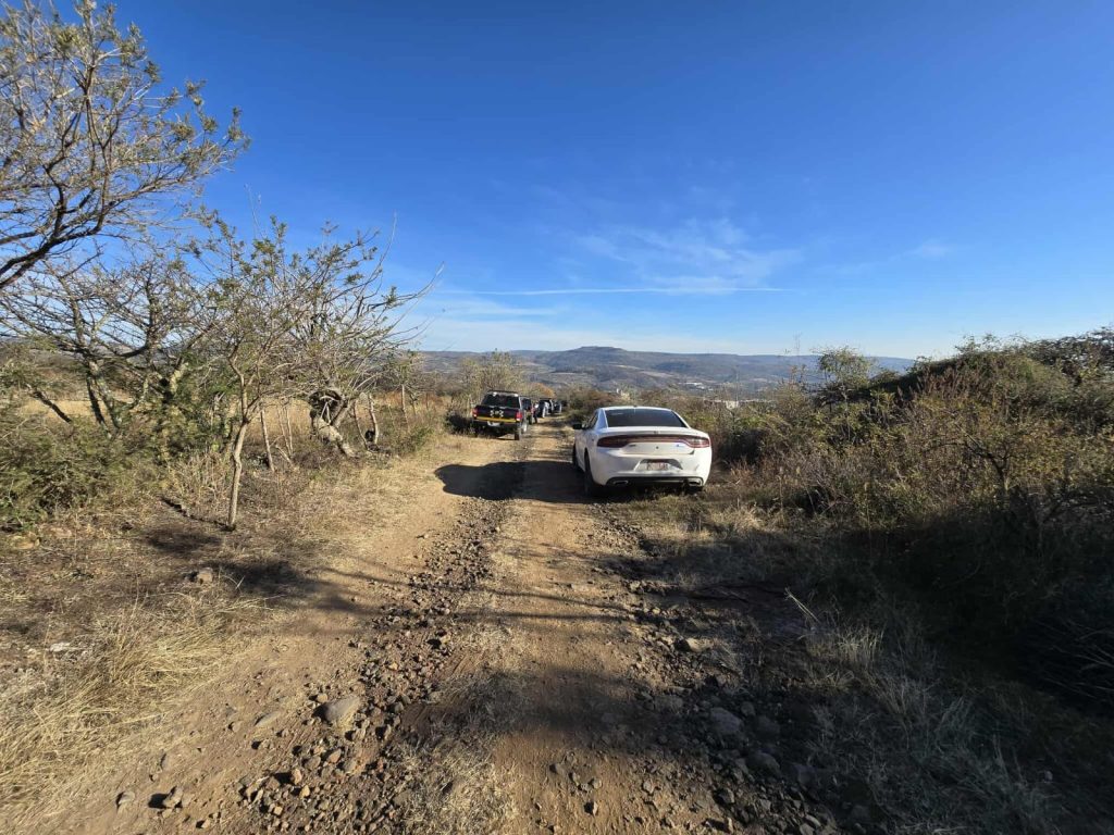 A una distancia aproximada de 50 metros fue encontrado un vehículo abandonado, marca Chevrolet Sonic, color negro, con placas PKZ-411-B, el cual, según fuentes policiales, podría pertenecer a la víctima.