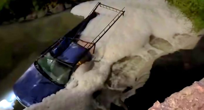 Uruapan, Mich.- La madrugada de este domingo un hombre que conducía una camioneta resultó herido al precipitarse a un canal de aguas negras sobre el camino a Tejerías, al oriente de la ciudad de Uruapan.