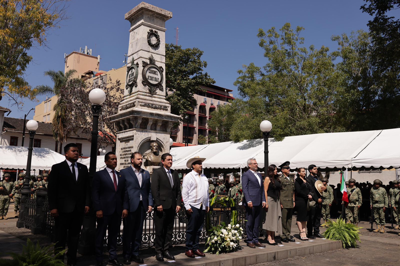 Uruapan, Michoacán,.- El gobernador Alfredo Ramírez Bedolla participó en la ceremonia por el 160 Aniversario Luctuoso de los Mártires de Uruapan, con la que se honra la memoria de un grupo de militares fusilados un 21 de octubre de 1865, durante la intervención francesa.