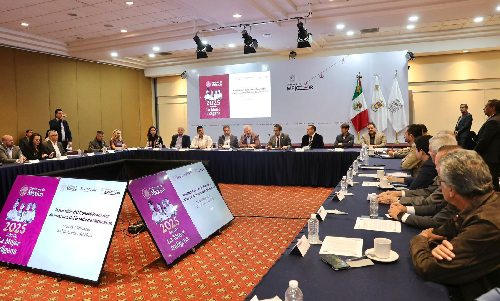 Morelia, Michoacán.- El gobernador Alfredo Ramírez Bedolla instaló y tomó protesta a los integrantes del Comité Promotor de Inversiones de Michoacán, quienes aprobaron firmar y enviar a la presidenta Claudia Sheinbaum Pardo, un pronunciamiento para mostrar respaldo del sector productivo y empresarial a su política económica y a las negociaciones que vendrán del nuevo Tratado entre México, Estados Unidos y Canadá (T-MEC) en 2026.