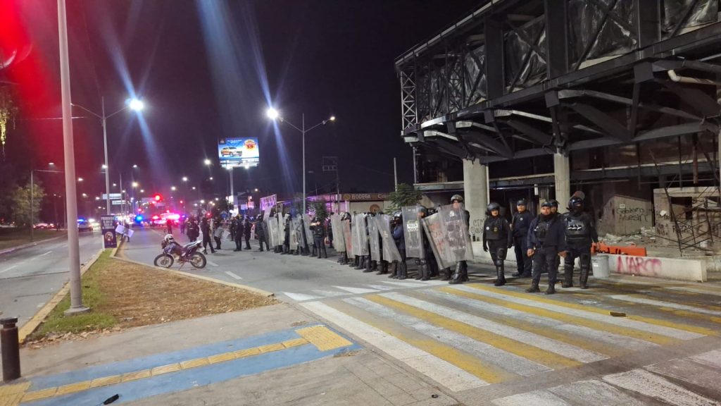 Uruapan, Mich.- La noche este lunes, decenas de jóvenes se manifestaron en las estaciones del Teleférico de la Presidencia Municipal y Plaza Ágora, las cuales vandalizaron y posteriormente fueron replegados por elementos de la Unidad de Restablecimiento del Orden Público, de la Guardia Civil, extraoficialmente habría al menos 5 personas requeridas.
