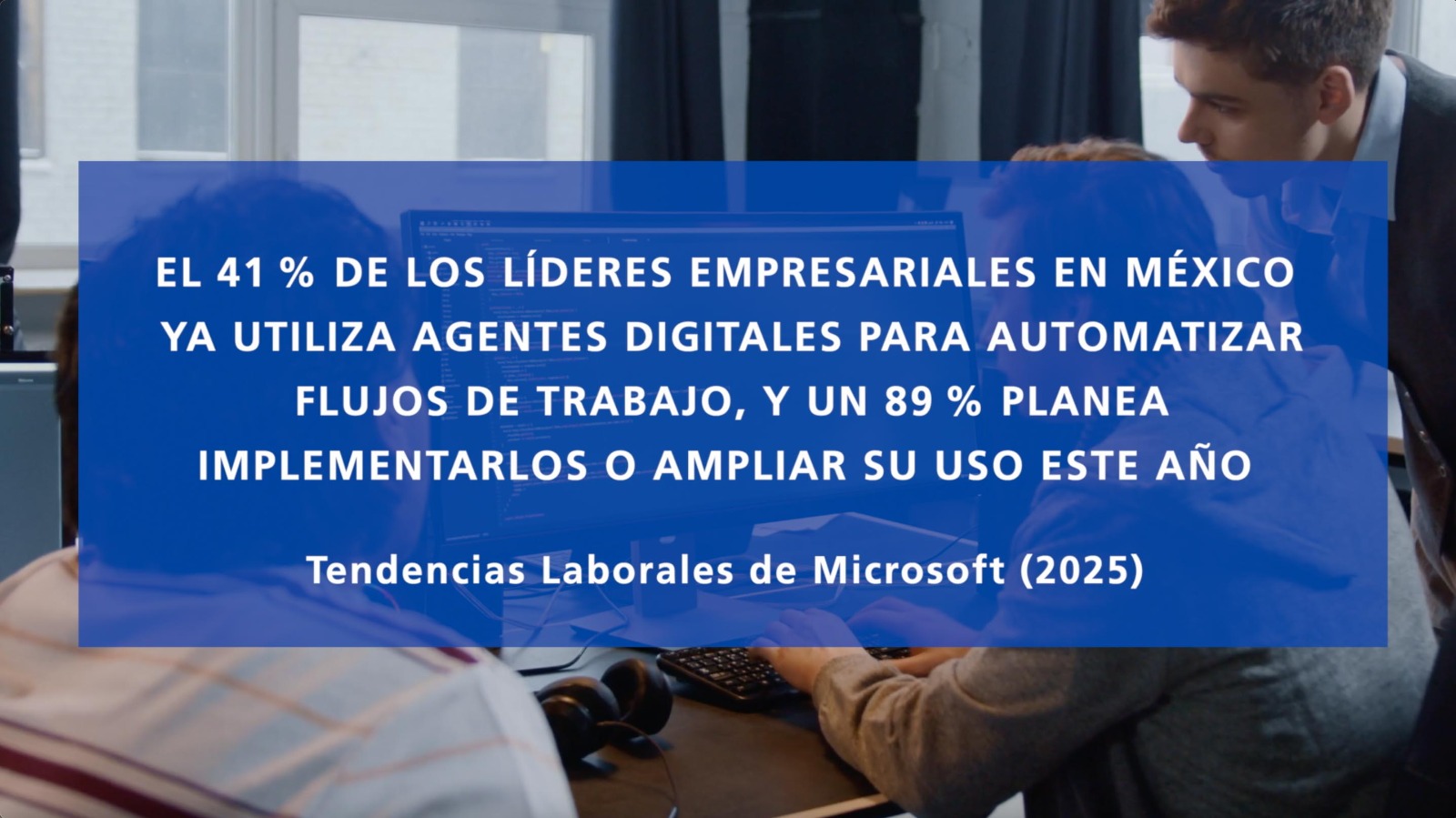 La Inteligencia Artificial (IA) está transformando el entorno laboral en México. El 41% de los líderes empresariales en México ya utiliza agentes digitales para automatizar flujos de trabajo y un 89 % planea implementarlos o ampliar su uso este año, según el Índice de Tendencias Laborales de Microsoft 2025.