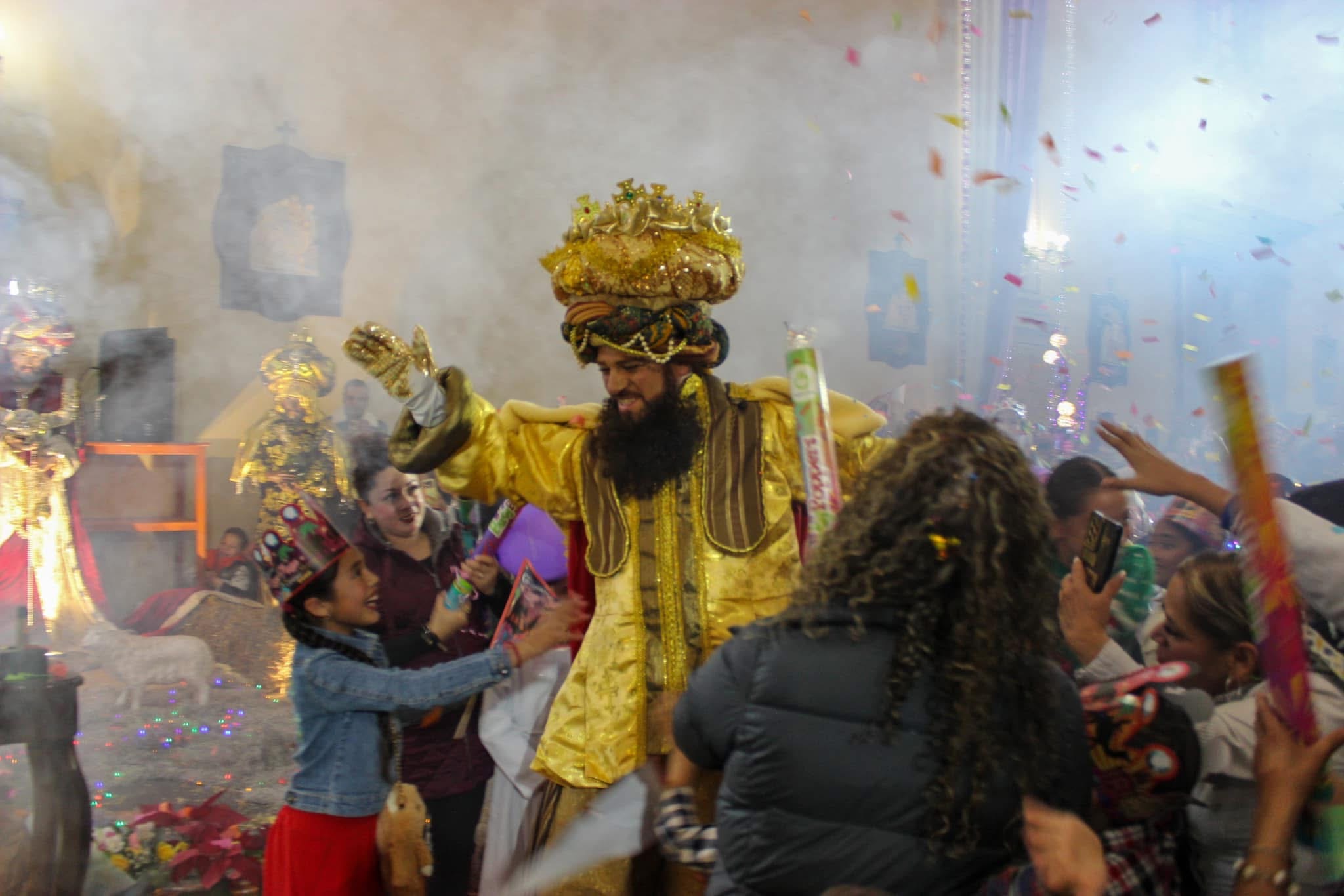 eucaristía y terminando la eucaristía los reyes magos hacen su aparición ahí mismo.