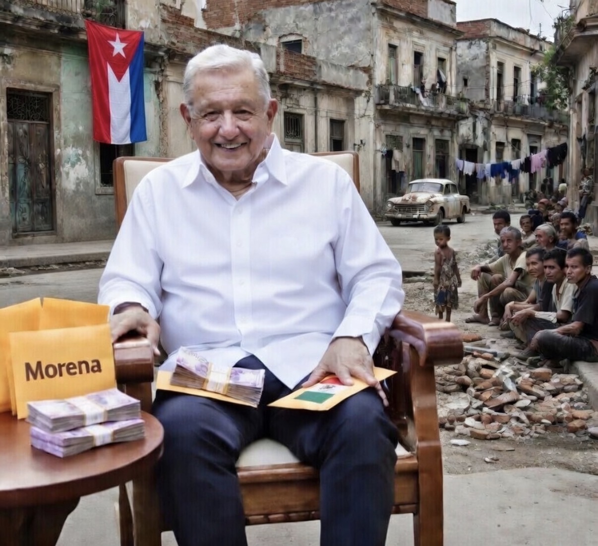 Y llegó su clásica y sinvergüenza petición: “invito a que todos depositemos en la cuenta de Banorte 1358451779 de la asociación civil Humanidad con América Latina, abierta por ciudadanos, escritores y periodistas para comprar alimentos, medicinas, petróleo y gasolina, y ayudar al pueblo cubano. ¡Que cada quien aporte lo que pueda!”.