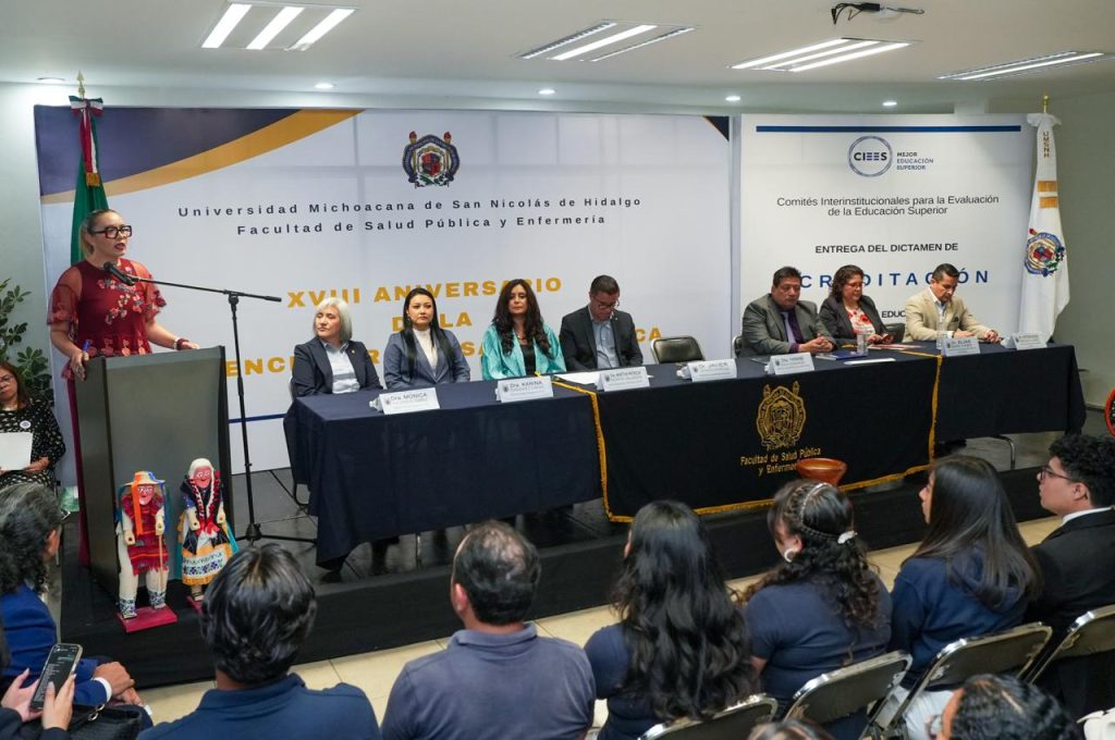 Morelia, Michoacán.- La Licenciatura en Salud Pública de la Universidad Michoacana de San Nicolás de Hidalgo (UMSNH) obtuvo la primera acreditación en su historia por parte de los Comités Interinstitucionales para la Evaluación de la Educación Superior (CIEES), la cual fue recibida por la rectora Yarabí Ávila González, en el marco del XVIII Aniversario de la Facultad de Salud Pública y Enfermería.